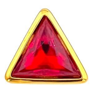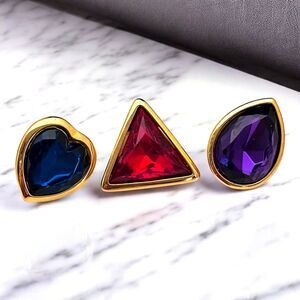 This signed Trifari pin set is gold toned and features jewel toned crystals.