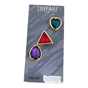 RARE Vintage Signed Trifari Pin Set Gold Tone Jewel Toned With Original Tag 11V