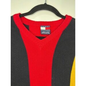 RARE Vintage Tommy Hilfiger Jeans Sweater Womens Rainbow Block Striped 100% Cotton Size Large Dress