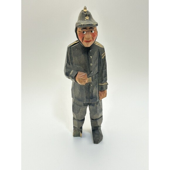 RARE Vintage Wood Carved Police Fireman Folk Art Denmark Figure Toy - READ