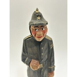 Vintage Wood Carved Police Fireman Folk Art Denmark Figure Toy -READ