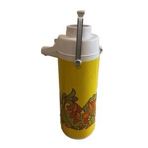 RARE Vtg 70s Peacock Yellow Floral Air Pot Vacuum Thermos Hot/Cold Dispenser