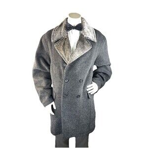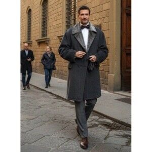 RARE Vtg Alfredo Fawza Italian Double Brsted Mohair Alpaca Wool Overcoat Mens 46