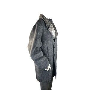 This vintage Alfredo Fawza Italian double-breasted overcoat is a rare find for any fashion-forward man. Made from a luxurious blend of alpaca, wool, and mohair, this heavyweight coat offers both warmth and style. Featuring a classic spread collar, button closure, and mid-length design, it is perfect for a variety of occasions from casual to formal. The gray color and solid pattern add a touch of sophistication, while the Italian craftsmanship and designer brand make it a standout piece in any wardrobe. This coat is sure to be a versatile and timeless addition for the winter and fall seasons.