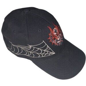 Vintage Jesse James Mac Tools Racing Hat, Black with Embroidered Skull, Spiderweb & Cross Tools, Size L/XL