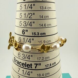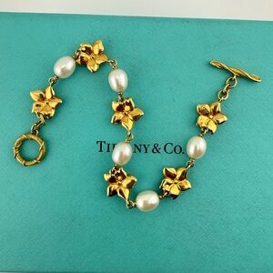RARE Vtg. Tiffany & Co. 18k Yellow Gold Pearl and Plumeria Bracelet 17g 🌸