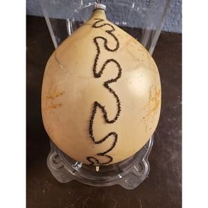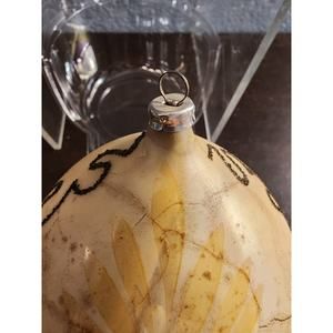 This is a rare and vintage Christmas ornament from W. GERMANY. The ornament is hand-blown glass and features a beautiful snowball design with a silver wire hanger. It measures 5 inches in height and is made of satin and glass materials. The ornament is part of a collection of hand-made ornaments from the 1940s and is perfect for Christmas decoration.