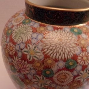 STUNNING RARE WWII SHOZAN KUTANI THOUSAND FLOWERS HAND PAINTED VASE. S17