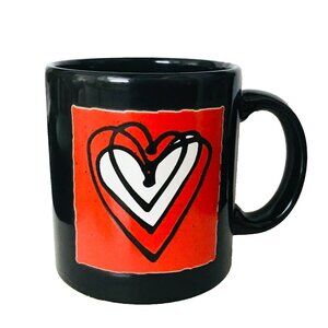 RARE Waechtersbach Germany Heart Mug Abstract Line Drawing Red Black HTF Ceramic