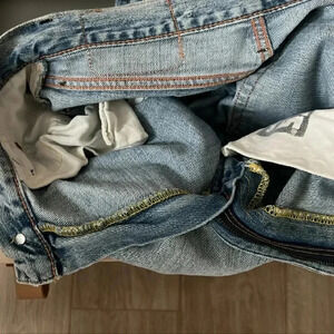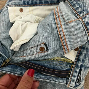 Classic Levi's jeans with a vintage look. Features a high waist and straight leg. Buttery soft! Feels like they've been around since the 50's with the softness! Originally paid $232. old school red faded label and light wash style from the 50's! High waisted 11" rise. zip fly (so no bulk!) red stripe lining pops out when rolled up. Light wash, fitted at waist copper rivets yellow and orange stitching vintage style! Ask any questions you need to