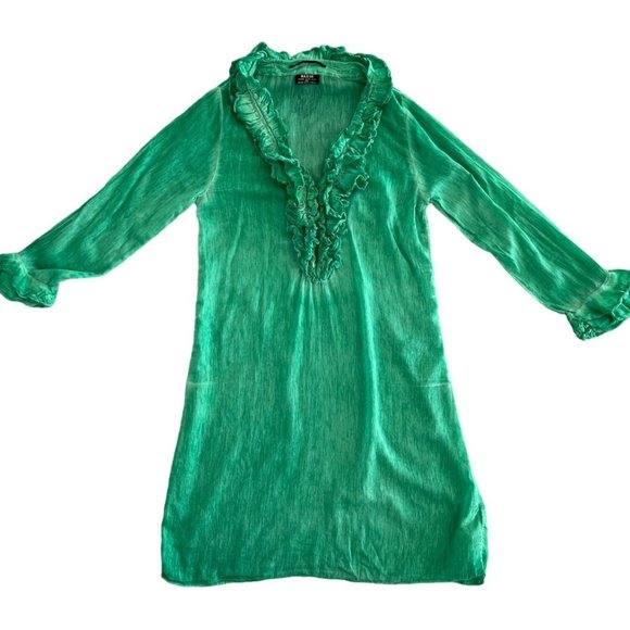 RA-RE Womens Dress Swim Cover Up Ruffle Neck Silk Blend Green 44 IT 6-8 Logo