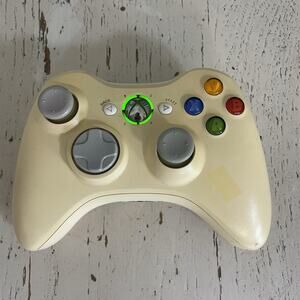 RARE Xbox 360 Wireless Controller Sand Color Tested Working No Batteries FLAWS