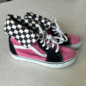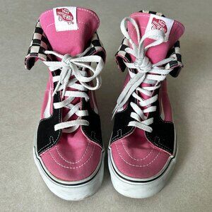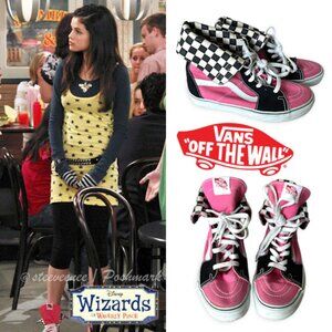 RARE Y2K Vans Off the Wall Extra High Tops as seen on Alex Russo in Wizards of Waverly Place season 1 (multiple episodes including episodes 9 and 12). Same style, brand and color. I find the Vans I've tried have run small, but I'm not sure about these in particular. Comes with two sets of spare laces---one white, one pink. Men's 7, Women's 8.5. No box. The pink are rarer than other other colorways.