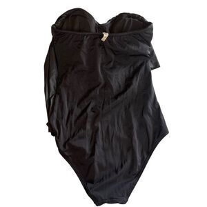 RARE Y2K Vintage Victoria's Secret Strapless Faux Leather Overlay Detail One Piece Swimsuit Size 6 B