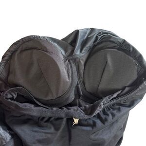Style: beach, beachy, pool, resort, cruise, summer, spring break, vacation, travel, lake, boating, suntan, unique, goth, gothic, dark romantic, whimsigoth swimwear, bathing suit, strapless swim suit, vegan, cruelty free, VS, minimalist, solid black