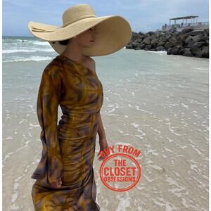 Featuring a one-shoulder neckline, long flared sleeve, and flowing pleated silhouette that moves beautifully โจ