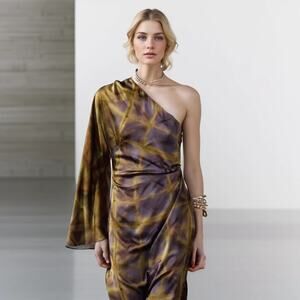 Elegant and artistic, this **ZARA Asymmetric Midi Dress** is a showstopper!