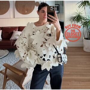 RARE!!! Ecru round neck long sleeve sweater. Structured fabric detail shaped like a flower with cut outs. From ZARA, in size M. New with tags. Sold out in stores.