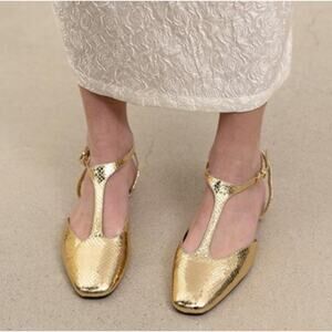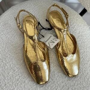 RARE!!! Gold slingback flats with a metallic effect and animal print. Strap on the front. Buckled ankle strap fastening. From ZARA, in US size 7.5 (EUR 38). New with tags. Sold out in stores.