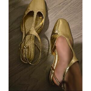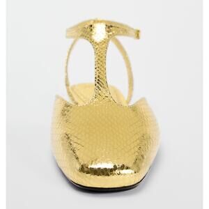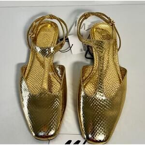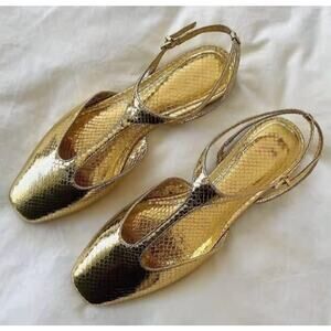 RARE!!! Gold slingback flats with a metallic effect and animal print. Strap on the front. Buckled ankle strap fastening. From ZARA, in US size 7.5 (EUR 38). New with tags. Sold out in stores.