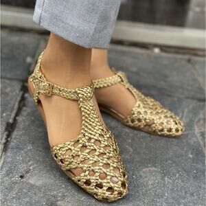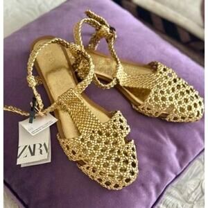 RARE!!! ZARA Metallic Gold Woven Flats NWT Blogger Fave ๐