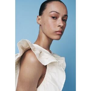 RARE!!! Ecru midi dress with a round neck and sleeveless design with ruffles. Adjustable tie belt. Tonal fabric combination detail. From ZARA, in size M and L. New with tags. Sold out in stores.