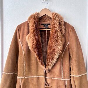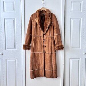RARE Zara Penny Lane Afghan Contrasting Faux Suede and Shearling Long Coat M