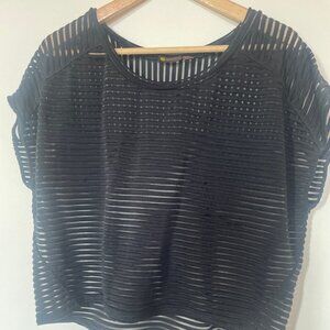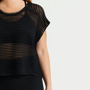 RARE Zella Cap Sleeve Ribbed Striped Black Mesh Oversized Workout Top L XL
