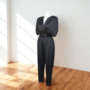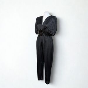 RARE and Amazing 80's Vintage Disco Glam Black Sequin Jumpsuit