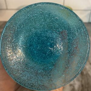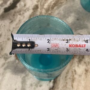 RARE retro Pier 1 Imports aqua blue blown glass w/ controlled bubbles stem wear
