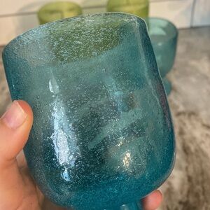 RARE retro Pier 1 Imports aqua blue blown glass w/ controlled bubbles goblets