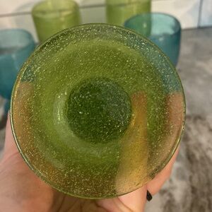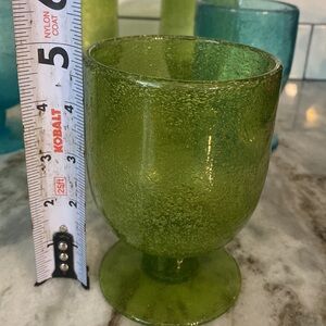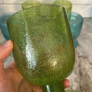 RARE retro Pier 1 Imports lime green blown glass w/ controlled bubbles goblets