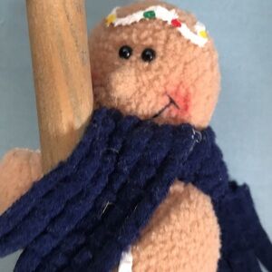 Kitchen holiday decor, Christmas gingerbread men, plush gingerbread men, wooden fork, wooden spatula, hanging christmas ornaments