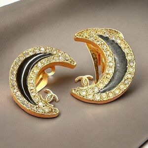 RARE AUTHENTIC CHANEL GOLD MOON CLIP ON VINTAGE EARRINGS