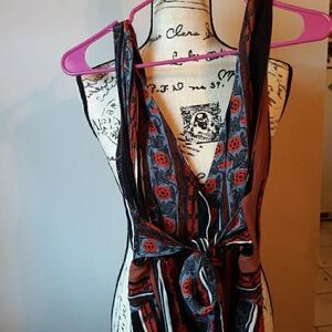 In excellent preowned condition! Vibrant color, and beautiful boho print! HAS POCKETS!! Womens Size 2. 100% RAYON. Ties in the back and has back zipper.
