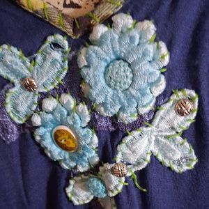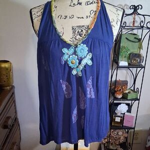 Stylish blue halter top featuring beautiful floral accents. Perfect for a casual day out or a special occasion. SIze tag is faded but it fits like an extra small, or small. Measurements upon request. In very good preloved condition. No stains or flaws that I see