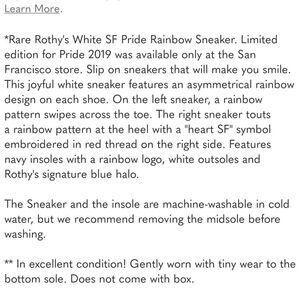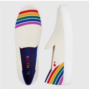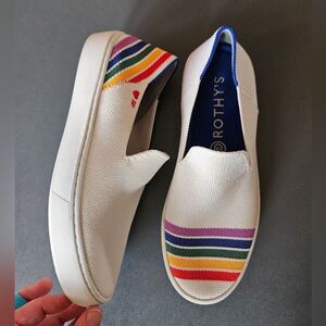 RARE Rothy's White SF Pride Rainbow Loafer Sneakers Limited Edition sz 6
