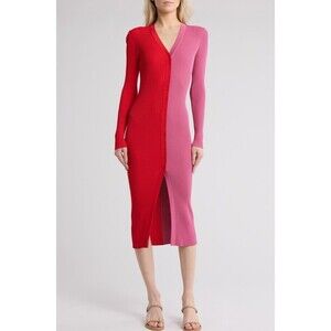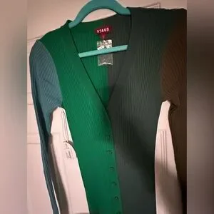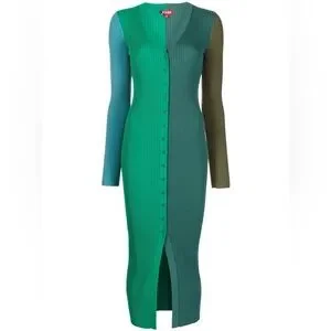 ‼️RARE‼️🎸STAUD🎸🔥NWT🔥 "Shoko" ribbed colorblock sweater dress in Fern— Size S