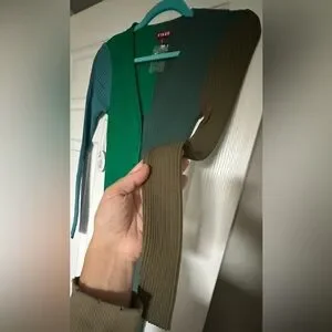 Elevate your style with this chic colorblock ribbed knit dress. Featuring a blend of green and brown hues, this dress is perfect for any occasion.