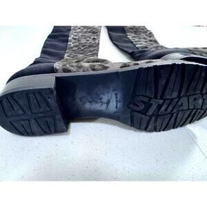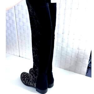 RARE!!"STUART WEITZMAN" Knee High, Leopard Print/Black Boots,Size 9.5, Slip On