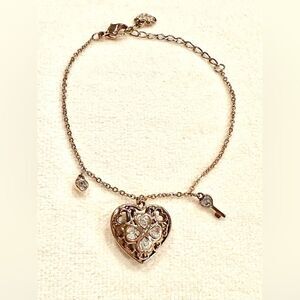 RARE SWAROVSKI ROSE GOLD TONE BRACELET WITH HEART CHARM