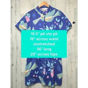 RARE Sheridan French 95% Cotton Botanical Nature Printed Fruit Bird Shirt Dress