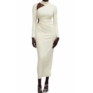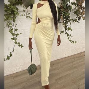 Yellow significant other pale yellow maxi dress with mock neck and cut out detail