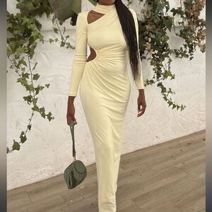Yellow significant other pale butter yellow maxi dress with mock neck and cut out detail