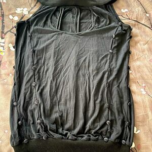 This elegant black women's top features a unique button design, perfect for adding a touch of sophistication to any outfit. Ideal for both casual and formal occasions.