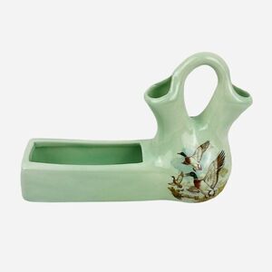 RARE Vintage Mint Green Double Opening Spout Wedding Bud Vase Succulent Planter Canadian Geese Mallard Ducks Signed Unique