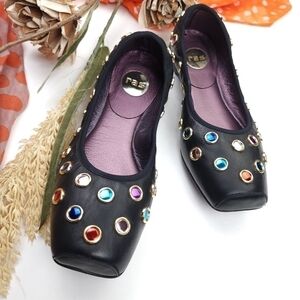 RAS Luxury Brand Blue Jeweled Ballet Flats Sz 38