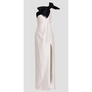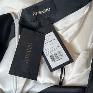 RASARIO One Shoulder Bow Embellished Silk Satin Black and White Maxi Gown Sz 8 is brand new with tags! Absolutely stunning gown is sold out everywhere and such a rare find!