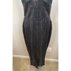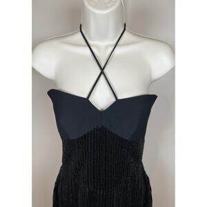 Rasario Sequined Black Midi Dress with Crepe Halter Top Size