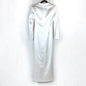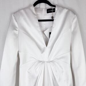 RASARIO White Satin Draped Long Sleeve V Neck Gown Dress Size FR 40 US 6 NWT